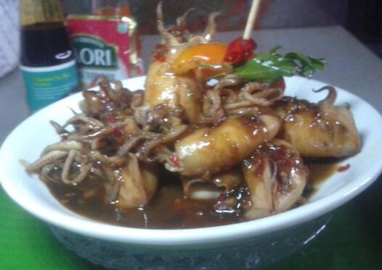 - 8. Tata cumi di piring saji, siram dengan kuah. 9. Siap disantap...