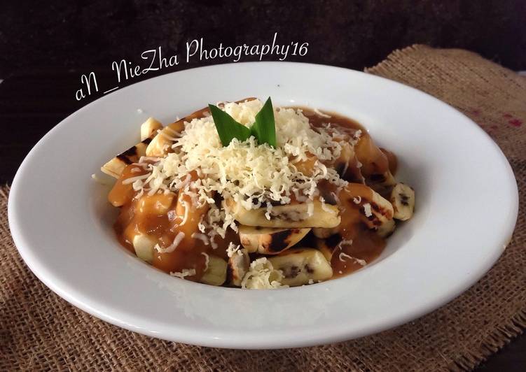 - Cara Penyajian: - Potong sedang pisang lalu taruh di piring. - Tuangkan kuah secukupnya, lalu taburi dengan keju.