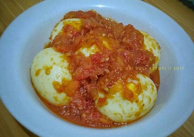 - Masukkan telur, biarkan hingga air berkurang dan bumbu meresap. Angkat dan sajikan