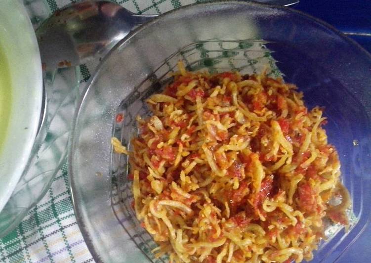 - Setelah sambal harum dan matang, masukkan teri. Aduk rata.