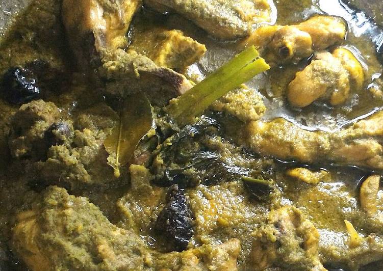 - Setelah tumisan bumbu harumm, masukkan cabe ijo giling tumis, terus masukkan ayamnya, aduk hingga rata, masukkan kapulaga, cengkeh, kayu manis, dan pekak kemudian ungkap tunggu sampai ayam empuk dan meresap, sebelum kompor dimatikan terakhir masukkan asam kandis, baru selanjutnya diangkat dan sajikan