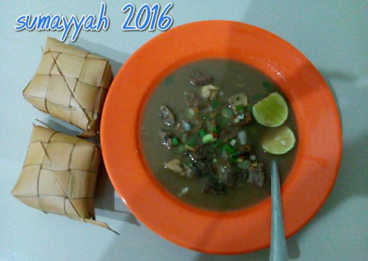 - Atur irisan daging dlm mngkok,tuang kuahx,taburi daun bwg sledri n bawang goreng. Sajikan dgn jeruk nipis,sambal n ketupat.. Selamat mencoba... Semoga berhasil...!