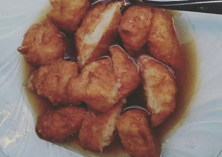 - Pempek yg sudah digoreng potong2 dan siram air cuko lalu siap disantap ๐